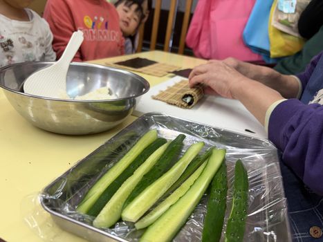 豆まきの後は、恵方巻にちなんで海苔巻き作りを楽しみました♪